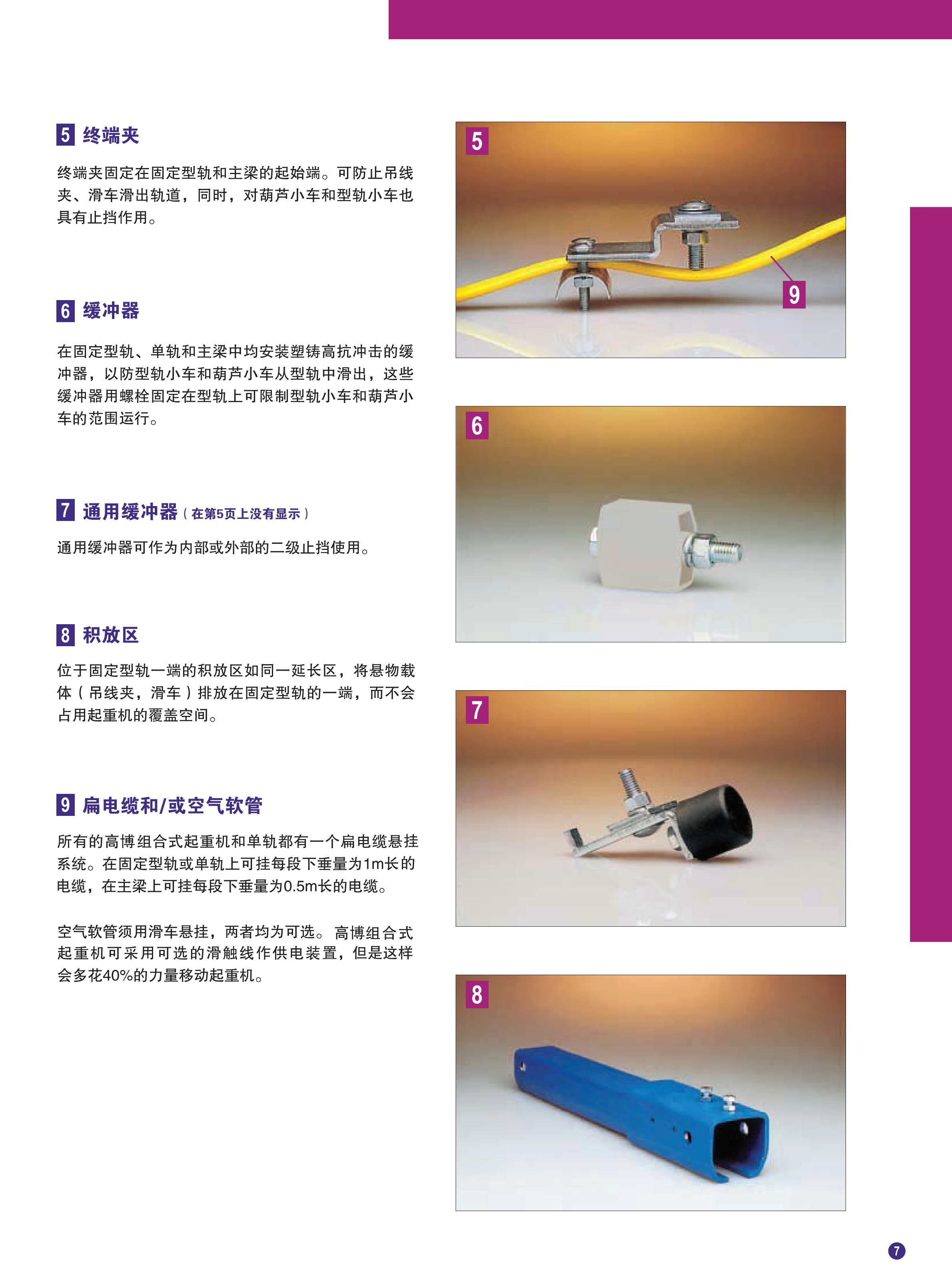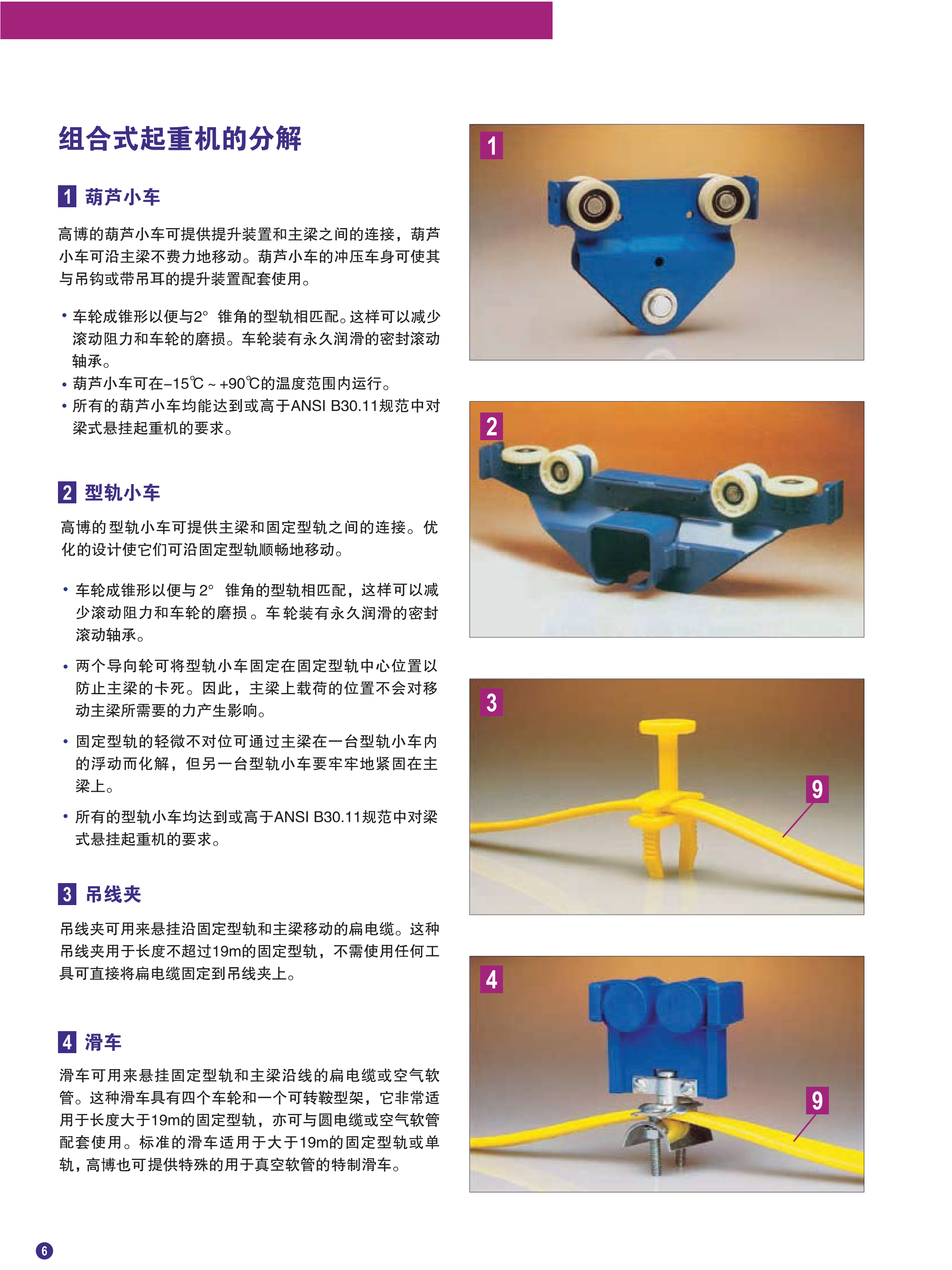 - 封闭型轨的设计可使起重机移动容易并可延长起重机的寿命